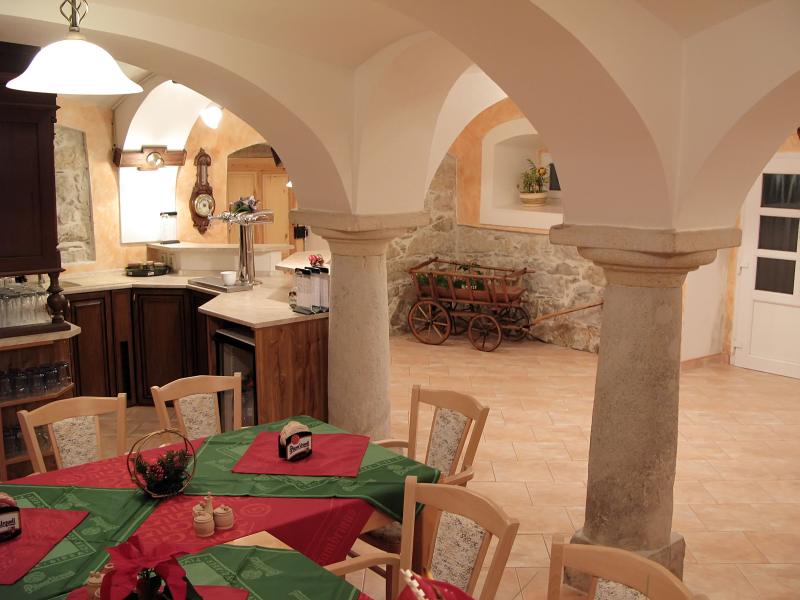 Hospoda je v domě majitelů - cca 50 m od ubytování.